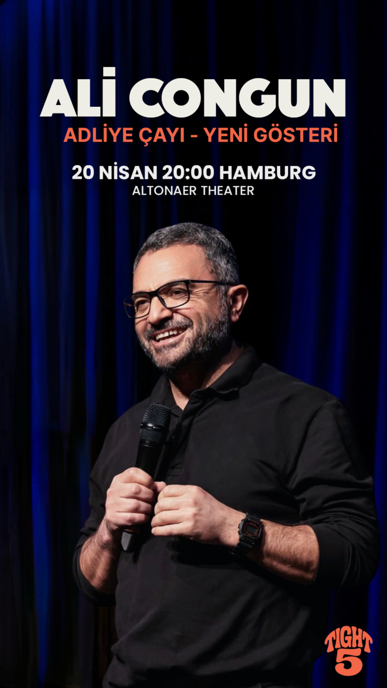 Ali Congun, kahkaha dolu yeni gösterisi Adliye Çayı ile 20 Nisan saat 20´de Altonaer Theater´da sizinle bulusuyor Ali Congun, izleyeni içine çeken anlatımı ve sahne enerjisiyle bu kez de gündelik hayatın absürtlüğünü sahneye taşıyor.